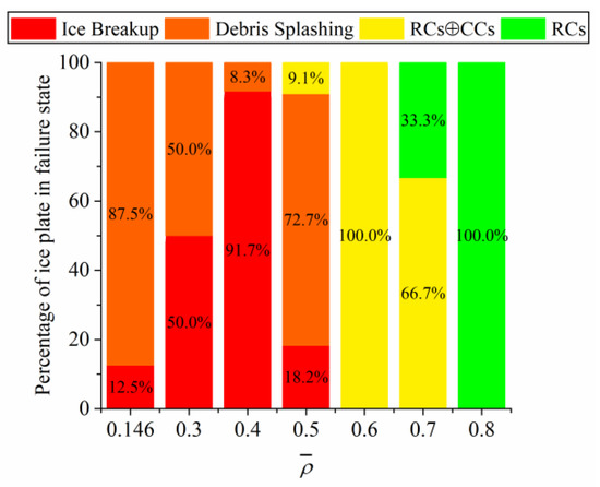 This section explores the effect of dimensionless density on ice plate damage. Spheres with different dimensionless densities were used to break the ice plate with = 0.089 and = 2.31 constant.