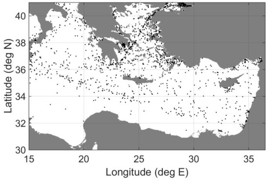 Snapshot of ship locations (1721 ships) in the Eastern Mediterranean Sea.
