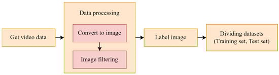 After the video data were collected, the active video was stored for approximately one hour, including the seven representative types of unsafe mooring line operations. Then the video was decomposed into a sequence of pictures frame by frame, and the pictures were filtered; then, 3300 RGB images containing obvious unsafe behaviors were selected for further processing. The seven types of unsafe behaviors are presented in Table 3.