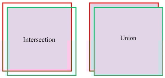 where BBoxpred and BBoxgt represent the boundary boxes of the classification and ground truth, respectively. The intersection over union (IoU) calculates the intersection of the two bounding boxes divided by their union.