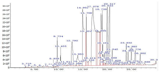 The GC-MS chromatogram of waste cooking oil biodiesel.