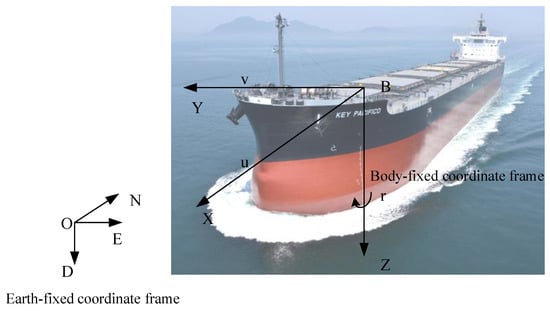 The following mathematical model of multi-vessel motion [39] is presented based on the earth-fixed (O-NED) and body-fixed (B-XYZ) frames, as shown in Figure 1: