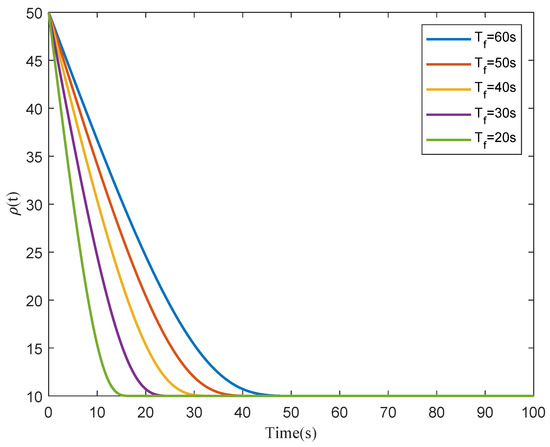 Recently, the prescribed performance function (PPF) [22] has had a number of successful applications in nonlinear control systems [23,24,25,26]. PPF-based control technology is able to make the tracking error converge to any desired small residual set with a moderate convergence rate and smaller overshoot and can improve the transient performance of multi-vessel formation systems. In [27], an observer-based neuro-adaptive control problem using a PPF-based idea is investigated to computationally simplify the developed scheme. In [28], PPF-based control technology is considered for an adaptive fault-tolerant attitude-tracking control system. A conventional PPF-based control algorithm is applied to the cooperative learning formation control problem with guaranteed transient performance in [29]. It should be noted that the aforementioned PPFs are asymptotically convergent, which may cause infinite convergence times.
