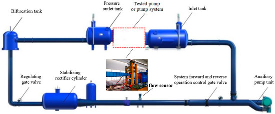 The system comprehensive uncertainty of the test bench is ±0.39%. Figure 6 shows the schematic diagram of the high-precision hydraulic machinery test bench. The parameters of the main measuring instruments and its uncertainty are shown in Table 5.
