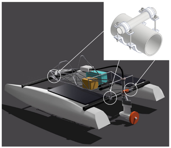 An application of additively manufactured FRP is reported in Figure 1, where such materials and technology are applied for the construction of a “light-weight and green” structural joint for a small racing boat. In particular, such a joint is applied for the structural connections between the cockpit frame and the boat cross beams, highlighted in white. The joint is made of fibre-reinforced plastics having a low environmental impact. In particular, a PETG thermoplastic matrix is reinforced by continuous basalt fibres (CBF). The fibre reinforcement is placed through a purposely studied additive manufacturing technique, according to preferential patterns, to achieve optimal structural performances (e.g., optimal stiffness–weight ratio) that match technical specifications.
