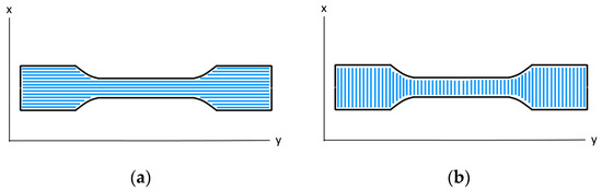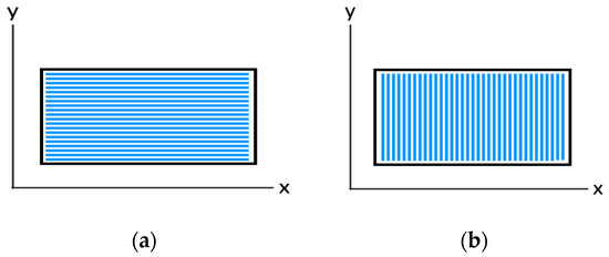(a) Planned printing path for chopped FRP, 0°; (b) planned printing path for chopped FRP, 90°.