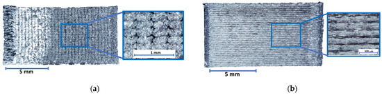 Optical microscopy and flash thermography have been used to gain in-depth knowledge of the relations between the additive manufacturing methodology, the mechanical performances, and the failure modes of the specimens. In particular, the following equipment has been used: Leica microsystem DVM5000 digital microscope (Leica, Wetzlar, Germany), Leica microsystem M165C stereomicroscope, and Flir systems X8400sc thermal camera (Teledyne FLIR, Wilsonville, OR, USA).