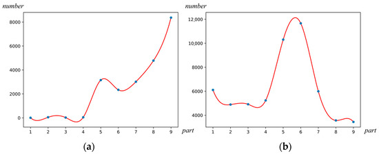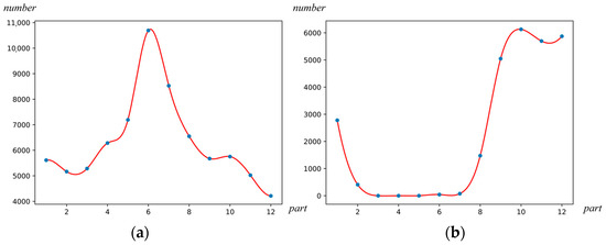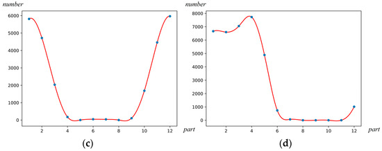 By the above calculation, we can obtain the number of bright spots in each segmented area in the image. As shown in Figure 14, it is the statistical curves of bright spots in the segmented regions.