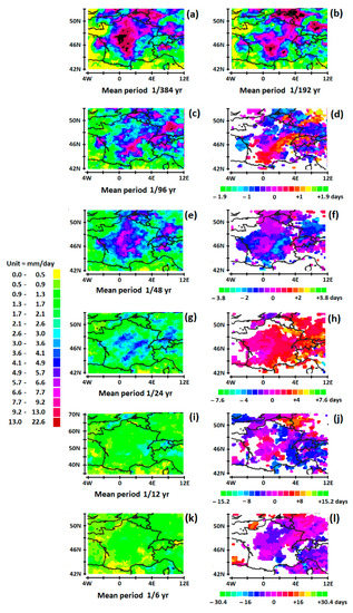 2.4.1. Exceptional Rainfall Episodes in Characteristic Period Ranges