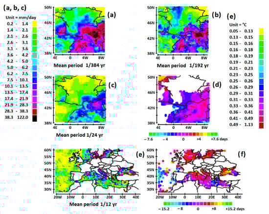- Pinault, J.-L. Global warming and rainfall oscillation in the 5–10 yr band in Western Europe and Eastern North America. Clim. Chang. 2012, 114, 621–650. [Google Scholar] [CrossRef]