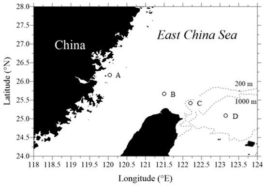 Map of the southern East China Sea showing the location of the sampling sites.