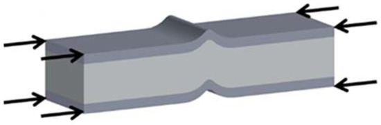 The honeycomb sandwich panel subjected to compressive loading may result in buckling failure, as seen in Figure 1, where a generic buckling failure mode for sandwich structures is depicted.