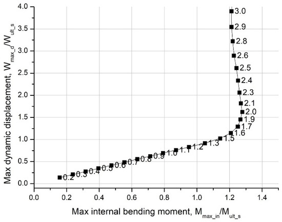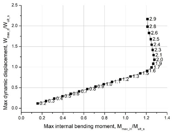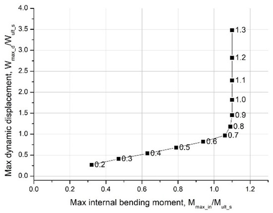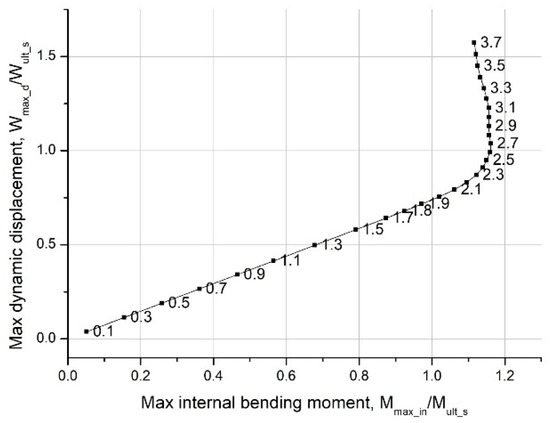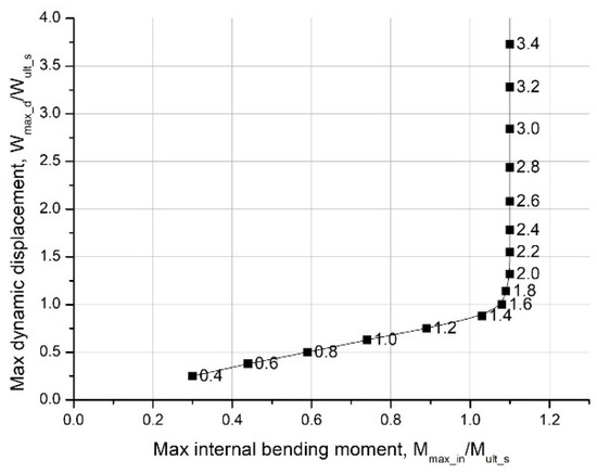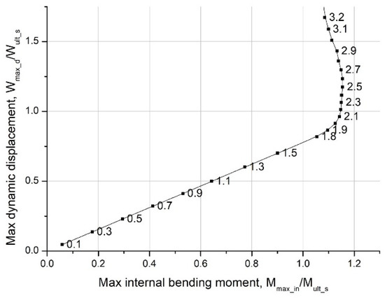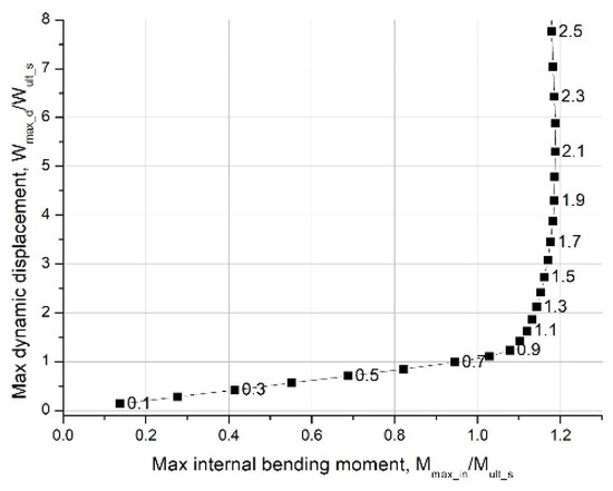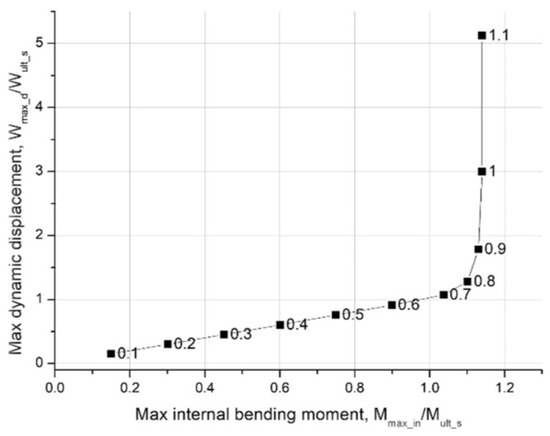 Internal bending moment of mid-section when the applied dynamic bending moment Md = 1.0Mult_s and the dynamic load duration time Td = 0.9 T0.