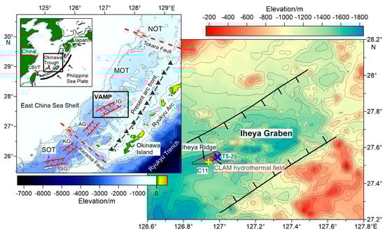 - Zhang, Y.; Zeng, Z.; Wang, X.; Chen, S.; Yin, X.; Chen, Z. Geologic control on hydrothermal activities in the Okinawa Trough. Adv. Earth Sci. 2020, 35, 678–690. [Google Scholar]