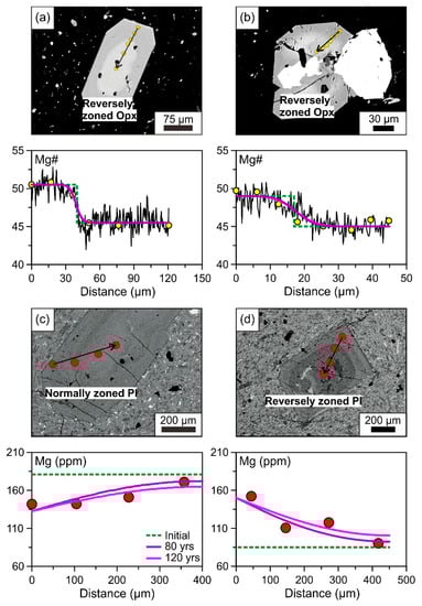 - Costa, F.; Dohmen, R.; Chakraborty, S. Time scales of magmatic processes from modeling the zoning patterns of crystals. Rev. Mineral. Geochem. 2008, 69, 545–594. [Google Scholar] [CrossRef]