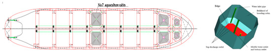 With the significant increase in global seafood demands in recent years, the aquaculture industry has expanded rapidly to contribute to more than half of the overall fish production worldwide [1]. However, the wastewater from offshore aquaculture has a bad impact on the environment, such as heavy metal pollution and eutrophication [2]. Therefore, the further expansion of aquaculture to the deep sea is imperative so as to enable sustainable development [3]. The mobile aquaculture vessel has good self-propulsion and a closed aquacultural environment, thus, more and more aquaculture vessels are used in the deep-sea aquaculture industry. Since fish farming requires a high-quality flow environment, there are certain requirements for the inlets, outlets, and flow velocity of the aquaculture cabin. Therefore, many scientists have conducted experimental and numerical simulation studies in this field.