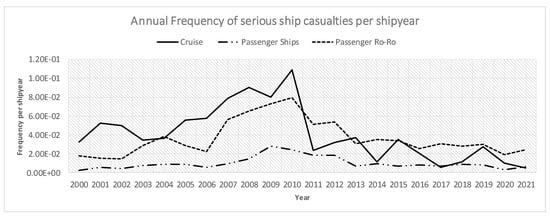 Annual frequency of occurrence of serious passenger ship casualties per shipyear.