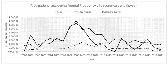 Annual frequency of occurrence of navigational accidents for passenger ships.