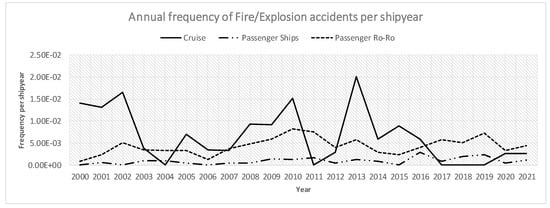 Annual frequency of occurrence of Fire/Explosion accidents for passenger ships.