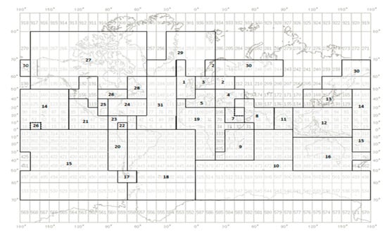 Regarding the geographic areas in which accidents have occurred, the IHS Sea-web® database [23] uses the SIS zones topological system for their localization; based on this, the surface of the earth has been divided into thirty-one (31) zones, which broadly correspond to major areas of interest and depict the implemented SIS zones, Figure 8.