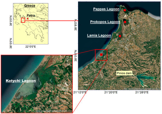 - Kalivas, D.P.; Kollias, V.J.; Karantounias, G. A GIS for the Assessment of the Spatio-Temporal Changes of the Kotychi Lagoon, Western Peloponnese, Greece. Water Resour. Manag. 2003, 17, 19–36. [Google Scholar] [CrossRef]