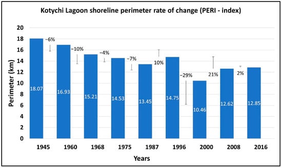 Perimeter fluctuations (%) during the study period in the Kotychi Lagoon.