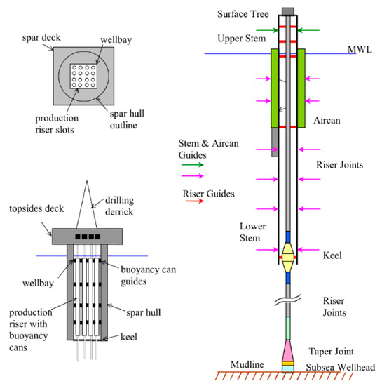 - Chedzoy, C.; Lim, F. Design challenges of deepwater dry tree riser systems for different vessel types. In Proceedings of the 13th International Offshore and Polar Engineering Conference (ISOPE-2003), Honolulu, HI, USA, 25–30 May 2003; pp. 76–82. [Google Scholar]