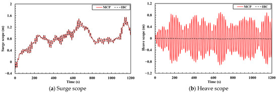 Heave and pitch motions of the MCP and IBC in Case 1.