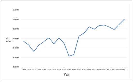 Figure 4. Visualization of the comprehensive risk evaluation index C j .