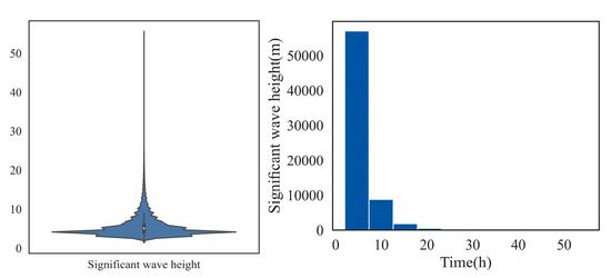 For machine learning and data analysis, the quality of the data is very important. The data in this paper are obtained from actual buoy observations, which are then transmitted in delayed mode and recorded in ASCII character format. As a result, problems such as buoy sensor failures or data transmission errors are inevitable. In order to better characterize the data, a novel filter formulation for SWH outliers is proposed. We first visualized the data using a violin plot and frequency distribution histogram, as shown in Figure 5.