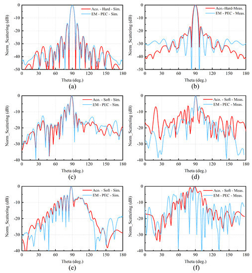 The above simulated and measured results verify the proposed similarity theory of EM and acoustic scattering. This illustrates that the acoustic scattering characteristic of the target can be simulated by the EM scattering under certain boundary conditions and vice versa.
