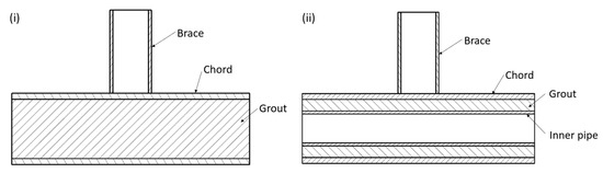Grouted T-joint. (i) Solid grouted, (ii) annular grouted.