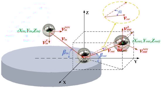 The collision angle coefficient of restitution is defined as the ratio of the collision angle of the particle before and after the incident. As shown in Figure 2, the angle between the rebound velocity vector and the plane XOY is the rebound collision angle , while the incidence angle is still the angle between the incidence velocity and the Y axis in the coordinate system. The ratio is the collision angle coefficient of restitution . The calculation formula is as follows: