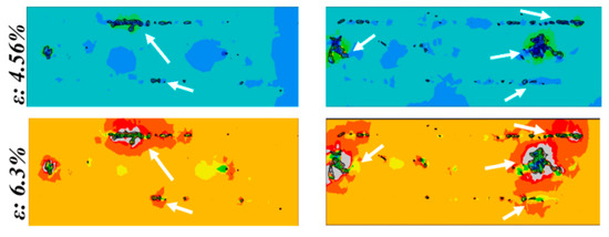 It should be noted that the shape and arrangement of the pores are also significant other factors affecting initial and propagation crack. Although it has been declared that surface roughness is not a considerable agent, it is better to do more research to prove this issue [37]. Kadiri et al. have stated that the fatigue crack propagation mechanism of AM60 alloy includes four main stages [38]: 1. incubation, 2. the small crack at the interface of the Al-rich eutectic/dendrite cell, 3. the small crack proceeds within the eutectic, and 4. the long crack formation stage. Figure 2 clearly shows the effects of the size and shape of the pores on the stress concentration and therefore the strain concentration. The larger the pore size, the higher the strain concentration zone [39].