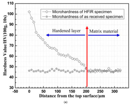 The impacts of HFIR on the material properties of AZ31 magnesium alloy “Reused with permission from Elsevier by License No. 5494620245825” [64]. (a) The cross-sectional microhardness of as-received and HFIR samples; (b) S-N curves of as-received and HFIR samples.