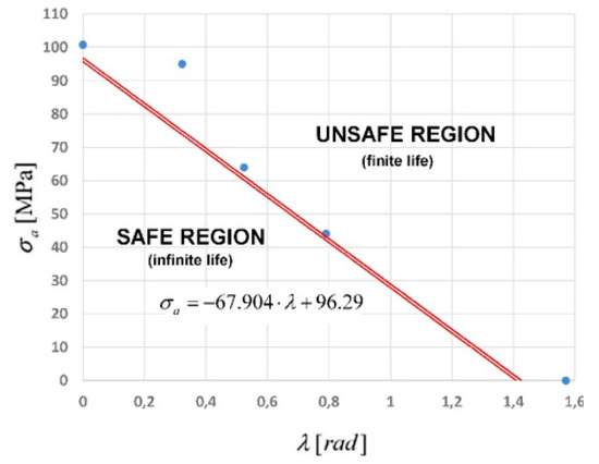 Anes et al. have found that the stress scale factor can be a useful method to estimate the fatigue life of AZ31 B-F, and they proposed a threshold model for assessing safe or unsafe states under proportional loading conditions (Figure 8) [24]. Moreover, Equation (1) was used to calculate the safety factor of the AZ31B-F magnesium alloy based on the proportional loadings, where λ is stress amplitude ratio and is the normal stress amplitude. A summary of achievements and approaches related to the AZ31 magnesium alloys are presented in Table 5.