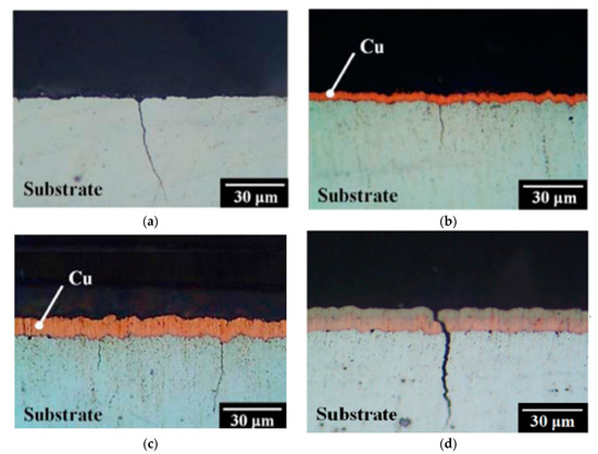 LCF fracture behavior of Mg alloy after (a) uncoated AZ61 specimen, (b) alkaline Cu-, (c) alkaline followed by acidic Cu-, and (d) Ni-Cu “Reused with permission from Elsevier by License No. 5494631394332” [82].