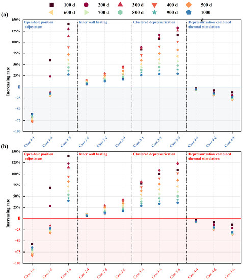 - Figure 13 shows the increasing rate of gas production compared with the control group, which allows us to determine which measure to adopt according to different periods (100 d, 200 d, 300 d, …, 1000 d).