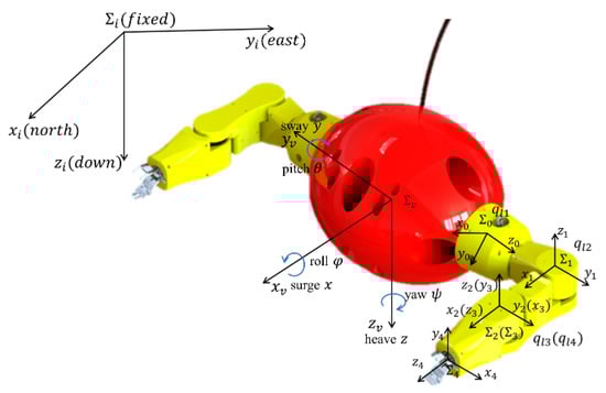 - Tarn, T.J.; Shoults, G.; Yang, S. A dynamic model of an underwater vehicle with a robotic manipulator using Kane’s method. Auton. Robot. 1996, 3, 269–283. [Google Scholar] [CrossRef]