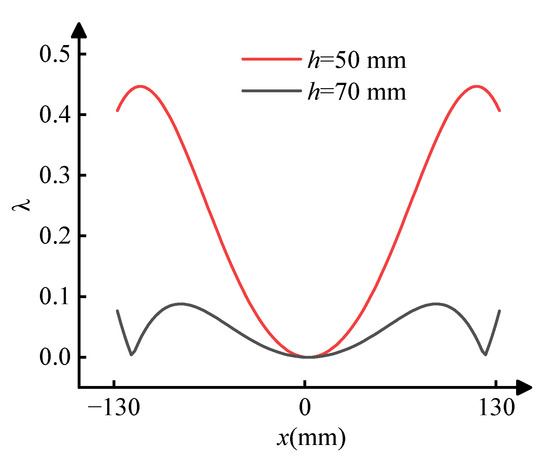 Figure 3 describes the discretization of BZ distribution on line l1 when h = 50 mm and 70 mm, respectively, according to Equation (2).