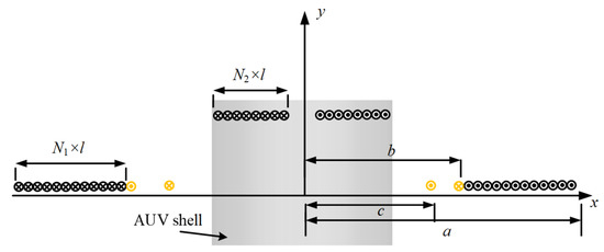 In order to guarantee AUVs obtain a stable power supply from the WPT system under uncertain misalignments, a UMF in a specified charging area should be formed. Some scholars have conducted relevant research on the construction of a UMF with a planar electromagnetic coupling coil. Wang et al. proposed a method of using a multiple-antiparallel square spiral structure transmitting coil to form a UMF [15]. In the literature [16], the geometric parameters of the anti-parallel square spiral transmitting coil were optimized by genetic algorithm, and the magnetic field uniformity factor was defined; the measurement results showed that the magnetic field uniformity factor was reduced from 0.154 to 0.089 after optimization. Zhang et al. added a compensation structure to the circular array coil, and extended the range of UMF [17]. A novel hybrid structure composed of a coil and a spiral winding was proposed for enhancing the uniform magnetic field distribution over the charging surface by Hui et al. [18]. A planar distributed multi-coil transmitter structure composed of a chief coil and booster coils to stretch the uniformity of the magnetic field was proposed in [19]. Transmitter arrays have also been proposed to build a UMF [20,21]. The above-mentioned UMF construction methods change the original coupling coil structure, resulting in variations in parameters such as self-inductance, which increases the complexity of WPT system modeling and analysis.