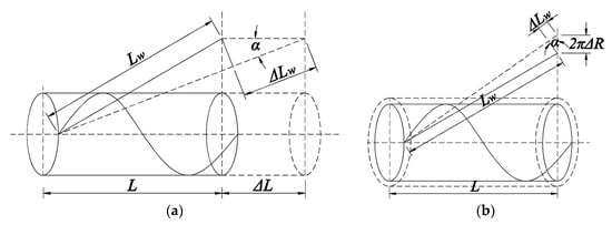 where denotes the initial length of the spiral belt corresponding to the pipe with length , and is the variation in the length of the spiral belt.