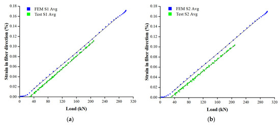Fiber-direction strains of Layer L8. (a) Strains of S1; (b) Strains of S2.
