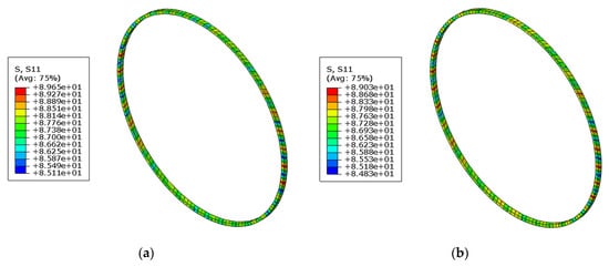 Distribution of fiber-direction stresses of Layer L7. (a) Section S1; (b) Section S2.