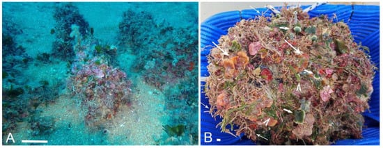 - Gallardo, D.; Oliva, F.; Ballesteros, M. Marine Invertebrate Epibionts on Photophilic Seaweeds: Importance of Algal Architecture. Mar. Biodivers. 2021, 51, 16. [Google Scholar]