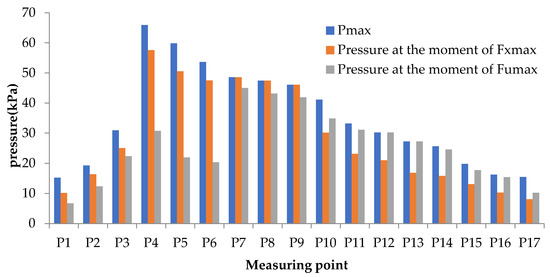 - Distribution law of the maximum pressure at each measuring point