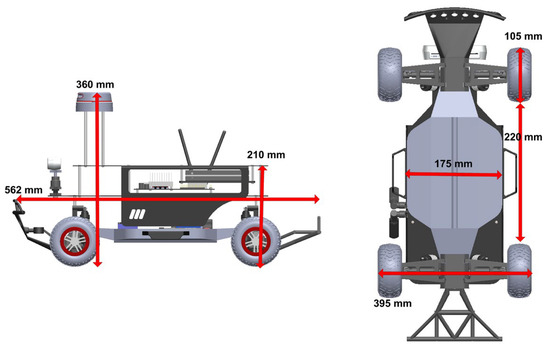The autonomous mobile robot used in the experiment was purchased as a product similar to the above conditions and we modified it to fit the experiment. The camera selected a Realsense D455 to acquire RGBD images. The LiDAR was installed high enough to detect the equipment in the engine room. The autonomous mobile robot can service for about 6 h when fully charged (charging takes about 2 h). Table 1 is the hardware list of the autonomous mobile robot. Figure 4 shows the shape and size of the autonomous mobile robot.