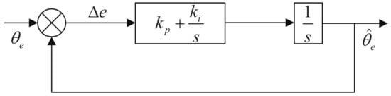 The aforementioned SMO is capable of generating an equivalent back-EMF error signal, but this signal still contains a high-frequency component and cannot be utilized directly to extract rotor position information. Most conventional methods use LPF for filtering, but this introduces a phase delay, which impacts the subsequent extraction of rotor position information. This work employs the back-EMF model to construct the observer, extract the back-EMF signal, and then use PLL to estimate the rotor position and speed. Since the change rate of motor speed is significantly smaller than that of the stator current, assuming , the back-EMF model of PMSM can be expressed as