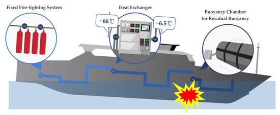 - Kang, H.J.; Kim, I.; Choi, J.; Lee, G.J.; Park, B.J. A concept study for the buoyancy support system based on the fixed fire-fighting system for damaged ships. Ocean. Eng. 2018, 155, 361–370. [Google Scholar] [CrossRef]
