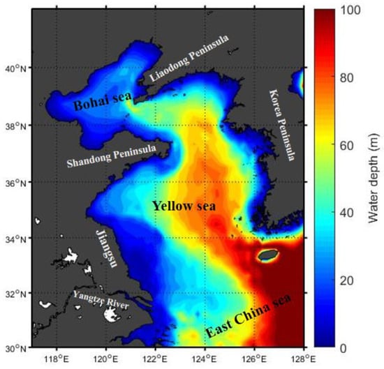 The Yellow and Bohai Seas are important continental shelf seas in the northwestern Pacific, covering an area of approximately 450,000 km2, with an average water depth of around 40 m (Figure 1). These seas exhibit high levels of primary productivity and deposition rates, which play a crucial role in the carbon cycling of China’s shelf seas [26]. Previous studies have utilized remote sensing data and the VGPM model to investigate the fundamental characteristics and seasonal variations of PP in the Yellow and Bohai Seas, but the results have shown significant differences. Tan and Shi [25] estimated the PP of the eastern shelf seas of China using the VGPM model and concluded that the annual average PP was about 564.39 in the Bohai Sea, 363.08 in the North Yellow Sea, and 536.47 in the South Yellow Sea. However, Yang [27] estimated the annual mean PP in the Yellow Sea using the VGPM model to be > 1000 . Cong [28] estimated PP using the data from the SeaWiFS and MODIS sensors, and the results showed that the PP reached 500–700 in most regions of the Yellow Sea during spring, and that it was highest during summer, with values of 800–1000 . However, the summer PP of the Yellow Sea estimated by Jia et al. [29] was only 530 . The VGPM results of Ding [30] showed that the maximum PP in the Yellow and Bohai Seas was > 2000 in summer, and the PP in the Yellow Sea showed a bimodal distribution with two peaks in June and September. The VGPM results of Li et al. [31] showed that the PP of the Bohai Sea was low between January and April, with a monthly average of only 677 in January, and it was 5265 in August and 825 in December. Previous studies have mainly focused on the seasonal variation of PP in the Yellow and Bohai Seas, while the interannual variability of PP and its long-term trend have not been well understood.